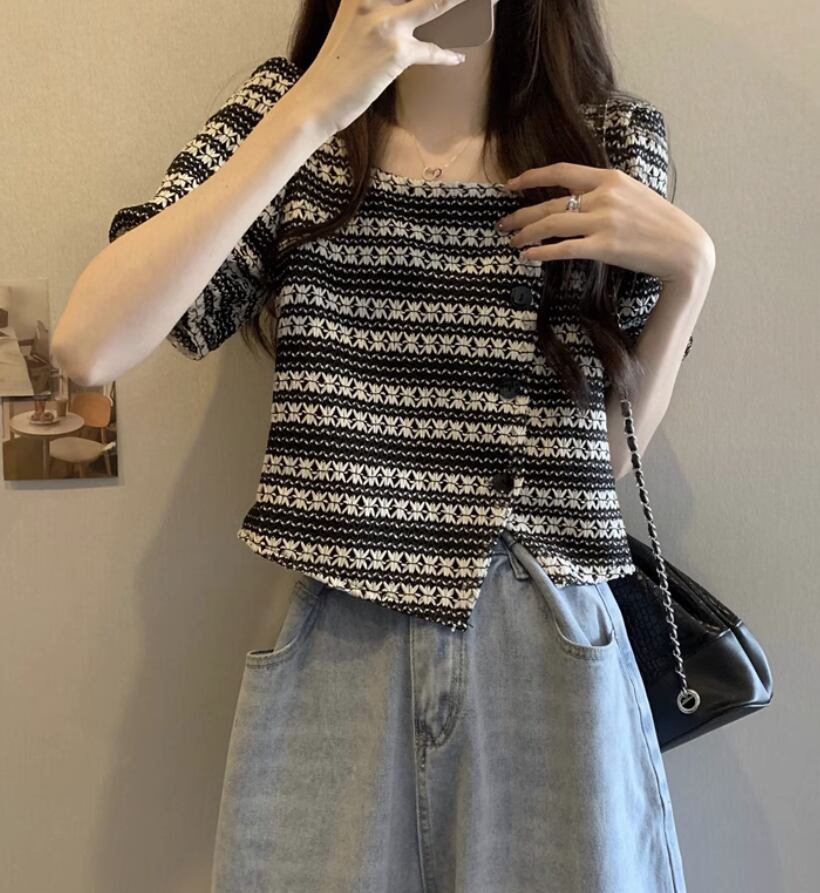 トップス デート モテアイテム カットソー ツイード素材 ボーダー柄 ウール 半袖 大人可愛い きれいめ 上品 おしゃれ かっこいい 大人可愛い ラブリー キュート ガーリー クール モード系 セクシー エレガント 存在感 フォーマル レディース 学生 通学 デート お出かけ 公園デビュー 女子会 お泊まり 休日 運動 ショッピング 普段使い 双子 韓国系 オルチャン ファッション コーデ スタイル 美脚 脚長 トレンド 流行 インスタ映え フリー サイズ 大人カラー シックカラー