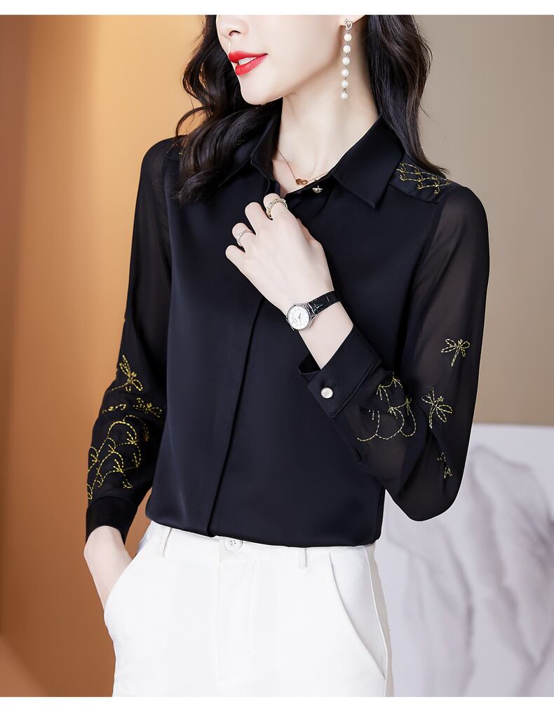 トップス シャツ ブラウス 白シャツ 白トップス 長袖 襟付き ストレート 刺繍 透け感 シースルー ポリエステル 大人可愛い きれいめ シンプル おしゃれ お洒落 かっこいい 大人女子 こなれ感 エレガント 主役級 存在感 抜け感 無地 柄 春 秋 20代 30代 40代 50代 60代 レディース 女性用 ビジネス OL 通勤 デート お出かけ 女子会 休日 パーティー イベント ホテル レストラン 着回し 普段使い 韓国系 オルチャン ファッション コーデ スタイル M L XL 2XL 3XL