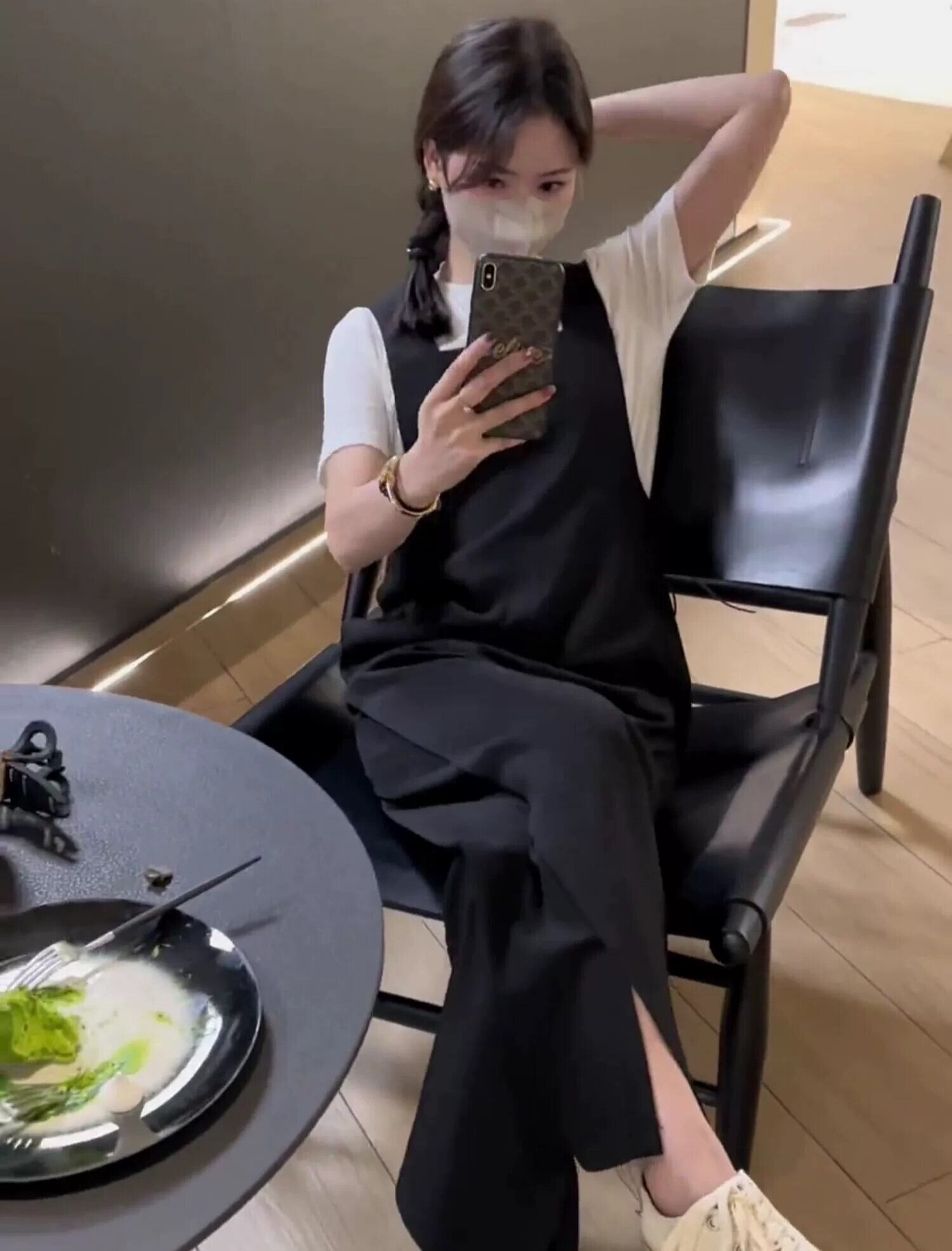 色展開 ホワイトトップス+ブラックサロペット