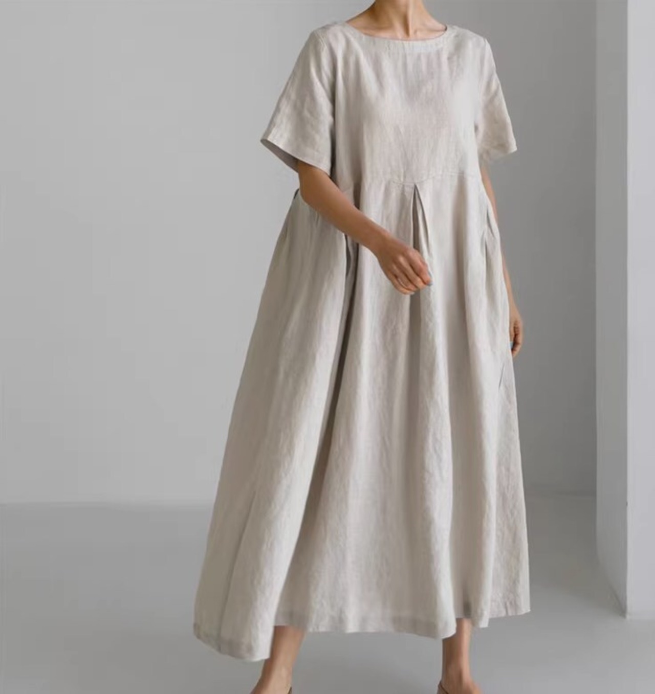 ワンピース プルオーバー ロングワンピース ミモレ丈 袖あり 半袖 ラウンドネック 襟なし Aライン ウエストマーク 切り替えデザイン ハイウエスト タック リネン 大人可愛い きれいめ シンプル 大人 おしゃれ 大人女子 こなれ感 ラフ キュート クール エレガント モダン 主役級 存在感 抜け感 無地 夏 10代 20代 30代 40代 50代 レディース ママ OL 学生 デート お出かけ 女子会 休日 リゾート 旅行 海 普段使い 韓国系 オルチャン 脚長 トレンド S M L XL 3色展開