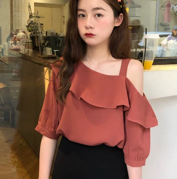 フリル リボンブラウス ワンショルダー デコルテ トップス シャツ ブラウス ショート丈 5分袖 セミフレア スリム 細身 ストレート スマート 薄手 かわいい 大人可愛い シンプル 大人 上品 おしゃれ 大人女子 こなれ感 ラフ ガーリー エレガント とろみ感 抜け感 無地 春 夏 10代 20代 レディース ママ デート お出かけ 公園デビュー 女子会 休日 リゾート 旅行 海 着回し 普段使い お揃い モテ 体系カバー 二の腕カバー 定番 S M L XL 2XL ぴったり ホワイト レッド