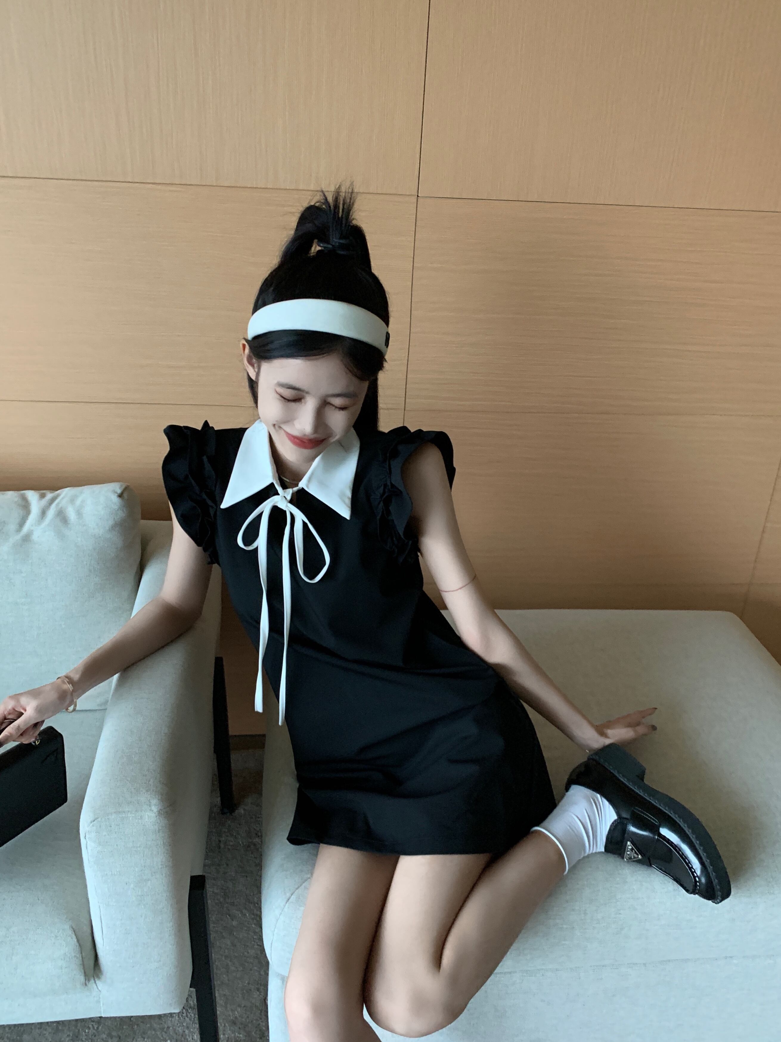 ワンピース 半袖 ショート丈 ショートスカート 膝上丈 ポロカラー フライングスリーブ ドレス ルーズ ハイエンドスカート リボン 襟付き プルオーバー かわいい 大人可愛い きれいめ シンプル カジュアル 大人 上品 おしゃれ お洒落 レトロ 大人女子 こなれ感 ラフ ラブリー キュート ガーリー 個性的 モード系 セクシー エレガント モダン 主役級 存在感 無地 春 夏 10代 20代 レディース 女性用 デート お出かけ 女子会 休日 パーティー イベント ショッピング 普段使い S M ブラック