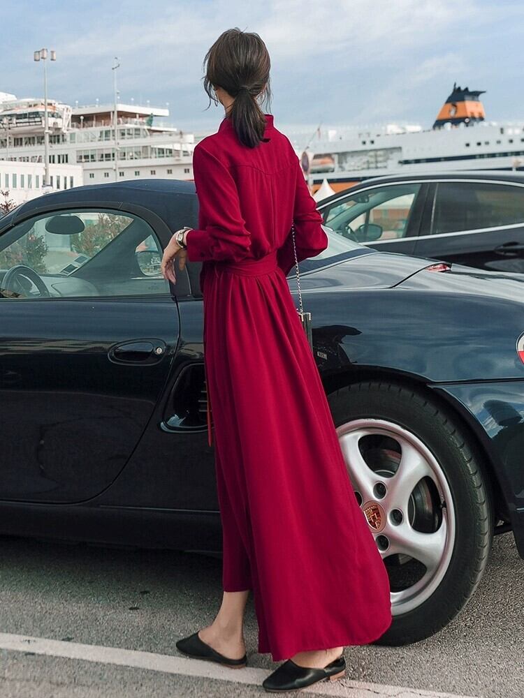 ワンピース ロングスカート シャツワンピース フレアワンピース ロング丈 袖あり 長袖 襟付き フレア Xライン ウエストマーク かわいい 大人可愛い きれいめ シンプル カジュアル 上品 おしゃれ かっこいい 大人女子 こなれ感 クール セクシー エレガント 存在感 抜け感 無地 春 秋 冬 レディース 通勤 学生 通学 デート お出かけ 女子会 休日 パーティー イベント リゾート 旅行 普段使い 体系カバー 脚長 安い インスタ映え XS S M L XL 2XL ゆったり サイズ豊富 赤 レッド