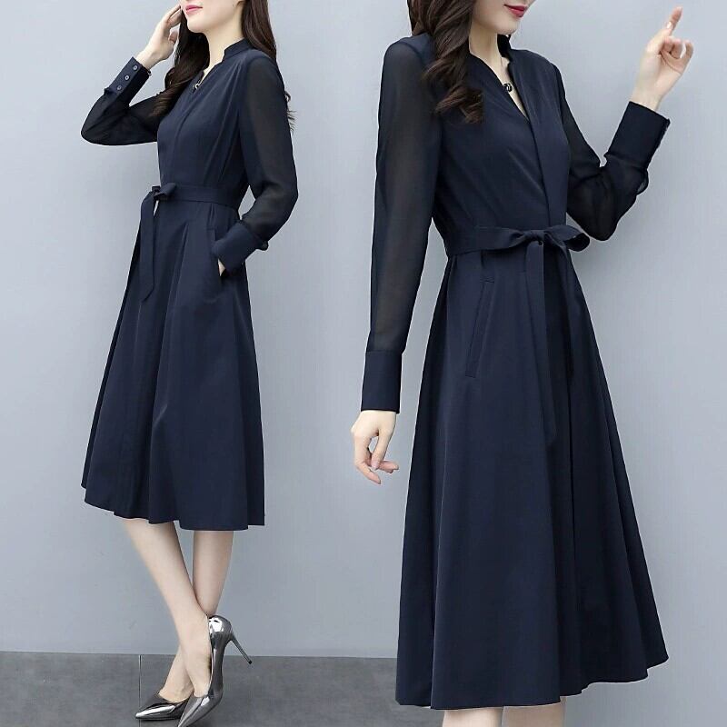 シャツワンピース 膝丈ドレス 膝丈 膝下 袖あり 長袖 Vネック スタンドカラー Aライン シフォン ウエストマーク 透け感 シースルー 大人可愛い きれいめ シンプル 上品 おしゃれ 大人女子 こなれ感 セクシー エレガント とろみ感 お嬢様 清楚 無地 レディース オフィス OL 通勤 デート お出かけ 女子会 イベント リゾート 旅行 体系カバー 高見え 格上げ トレンド オールシーズン お呼ばれ 入学式 入園式 卒業式 卒園式 謝恩会 演奏会 S M L XL 2XL サイズ豊富 ネイビー