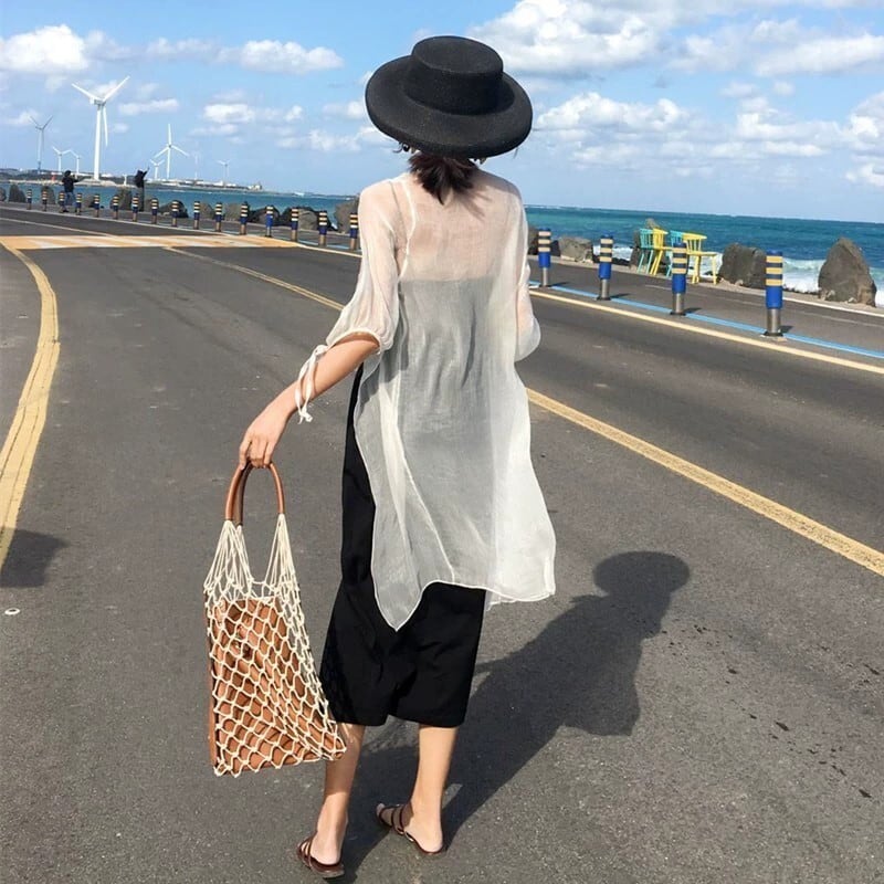 ショール 日除け トップス ブラウス カットソー カーディガン 白シャツ 膝下 ミディアム丈 7分袖 襟なし 透け感 シースルー 大人可愛い きれいめ シンプル カジュアル 上品 おしゃれ 大人女子 ラフ スポーティー クール セクシー エレガント とろみ感 無地 夏 オールシーズン シーズンレス レディース ママ 学生 通学 デート お出かけ 公園デビュー 女子会 休日 運動 ジム ヨガ アウトドア リゾート 海 プール ガーデン 着回し 普段使い 重ね着 楽ちん 体系カバー S M L XL ホワイト