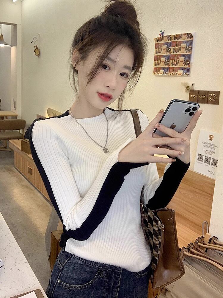 サイドのバイカラーの切り替えがおしゃれな長袖トップスです。