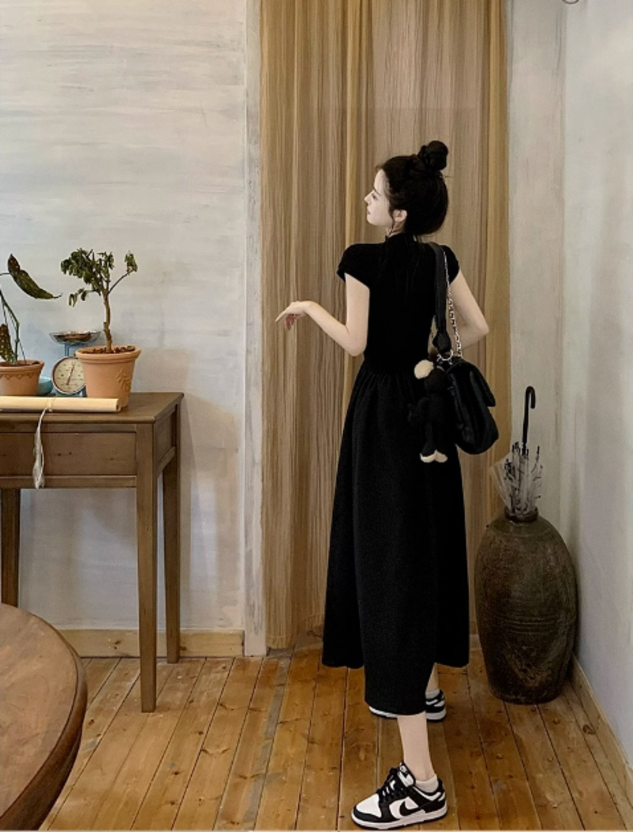 フレンチスリーブ&ハイネックのロングワンピースです♪