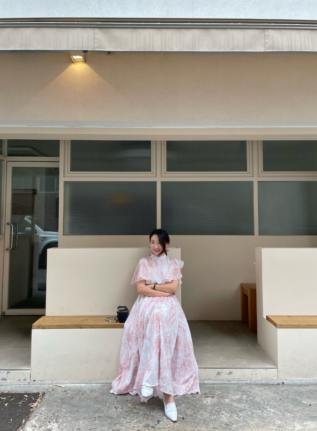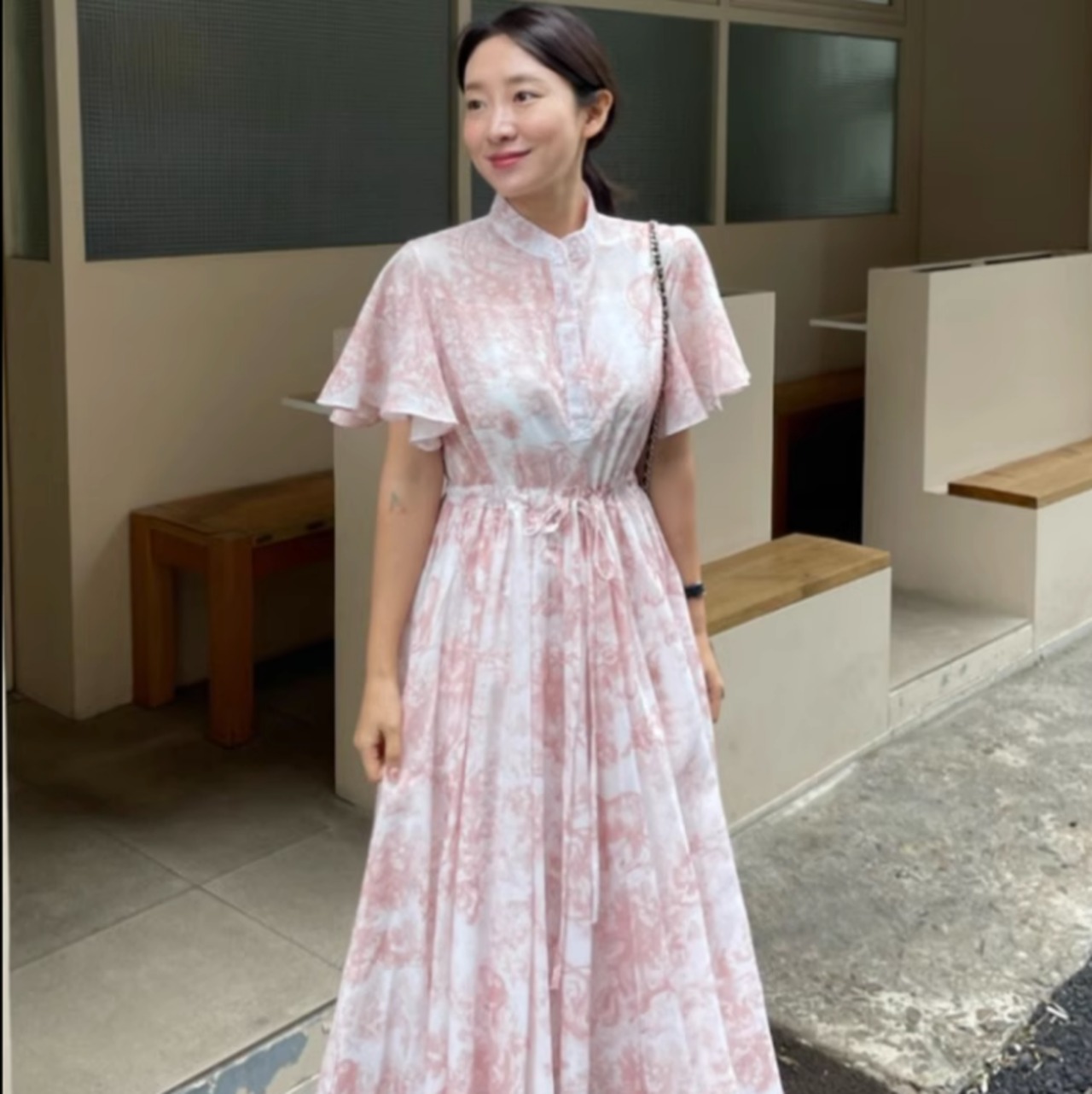 襟付きのデザインやウエストマーク、フリルのあしらいなど、大人可愛い要素がたっぷりと詰まっています。