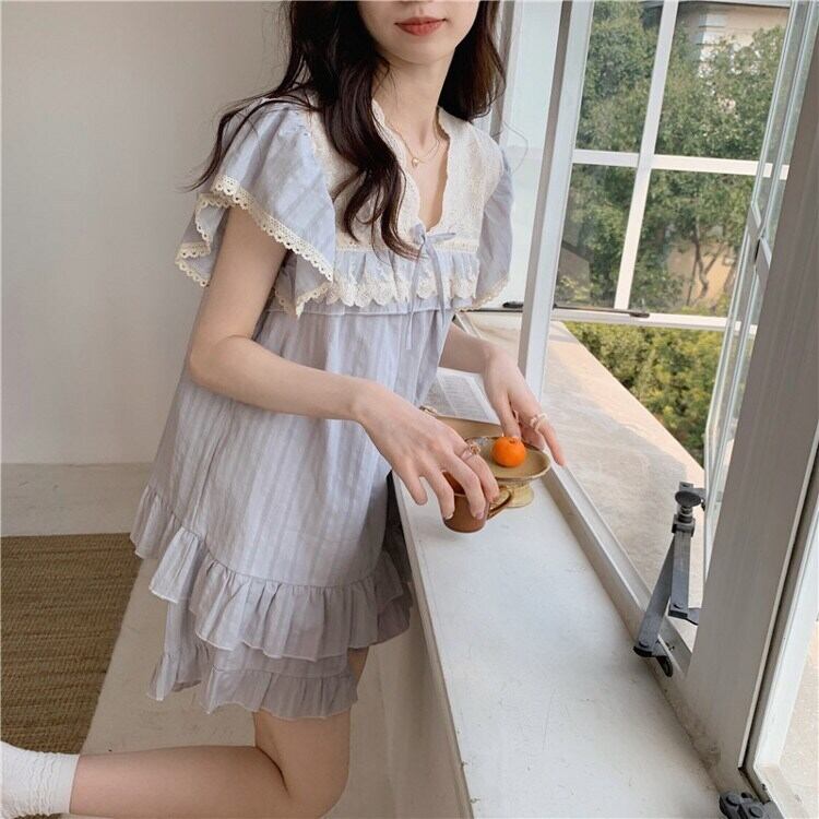 トップスとボトムスがセットになったこのアイテムは、夏の休日やお泊まりにぴったりです。