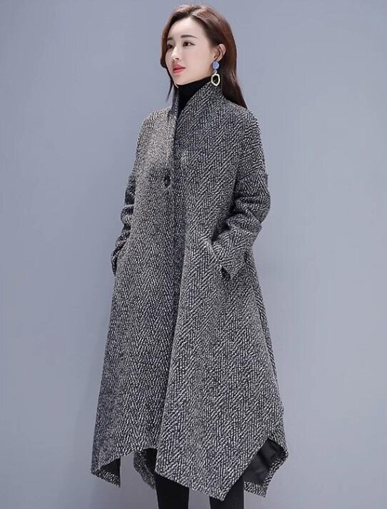 アウター コート ひざ丈 袖あり 長袖 スタンドカラー ポケット 前開き ポリエステル 大人可愛い 大人 おしゃれ お洒落 レトロ 大人女子 こなれ感 キュート 個性的 エレガント モダン 主役級 存在感 千鳥格子 秋 冬 ハロウィン クリスマス 10代 20代 30代 40代 50代 レディース 女性用 ママ マタニティ OL 通勤 学生 通学 デート お出かけ 休日 イベント 旅行 ホテル レストラン オルチャン ファッション コーデ スタイル 楽ちん インスタ映え L XL ゆったり グレー