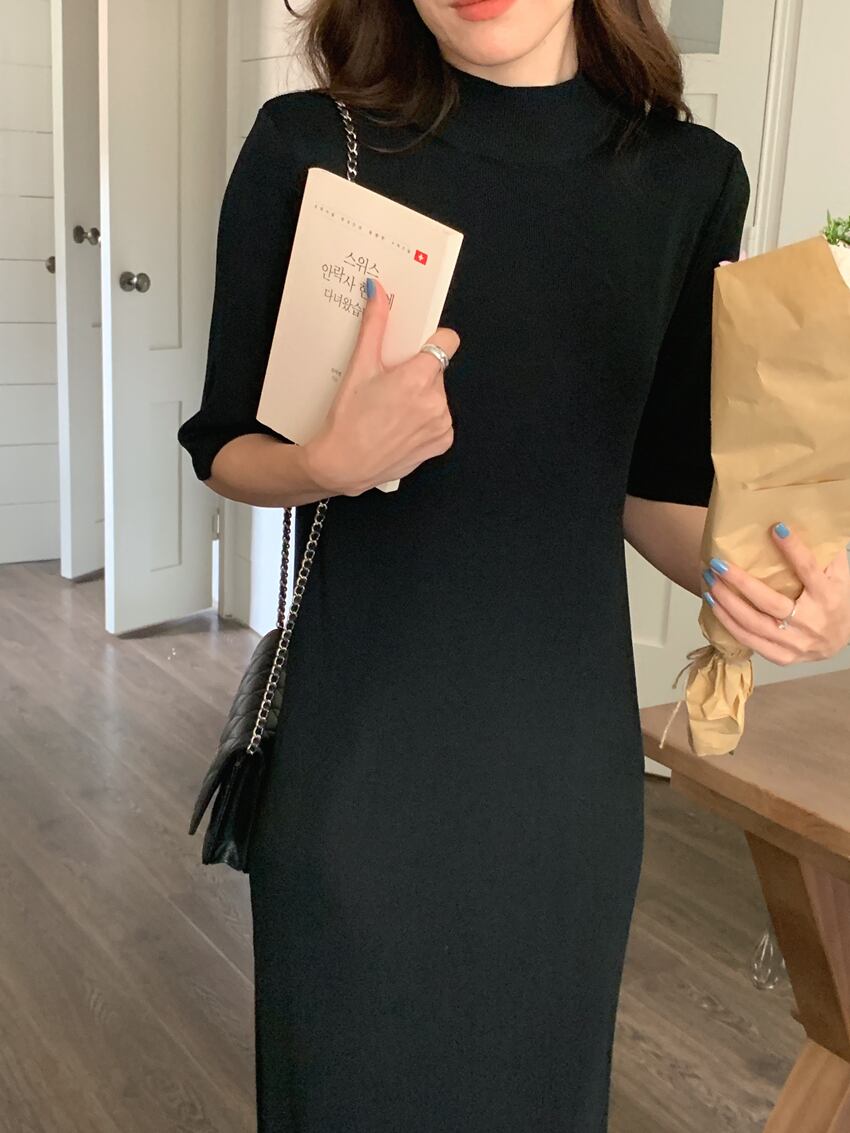 ワンピース ワンピドレス ロング ロング丈 袖あり 半袖 ハイネック 襟なし セミフレア Aライン ハイウエスト サマーニット かわいい 大人可愛い シンプル おしゃれ こなれ感 ラフ 無地 夏 秋 20代 30代 40代 レディース 女性用 通勤 デート お出かけ 公園デビュー 女子会 休日 リゾート 旅行 海 ガーデン レストラン 着回し 普段使い モテ 脚長 サイズ ワンサイズ 色展開 ブラック アプリコット