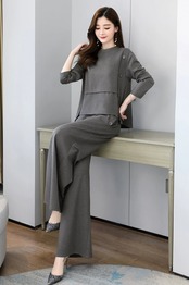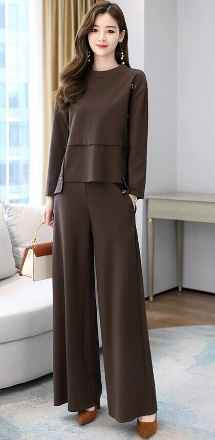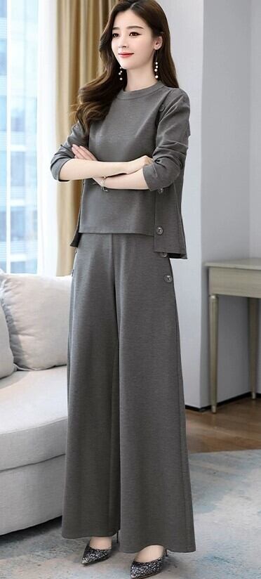 セットアップ カットソー ズボン ワイドパンツ ロング丈 長袖 ラウンドネック ポケット 薄手 上下セット 2点セット 大人可愛い きれいめ 大人 上品 おしゃれ お洒落 かっこいい 大人可愛い 大人女子 こなれ感 マニッシュ クール モード系 エレガント 主役級 存在感 とろみ感 抜け感 無地 入学式 入園式 卒業式 卒園式 20代 30代 40代 レディース 女性用 ママ OL お出かけ 女子会 イベント 旅行 ホテル レストラン 着回し 普段使い モテ M L XL 2XL 3XL 4XL