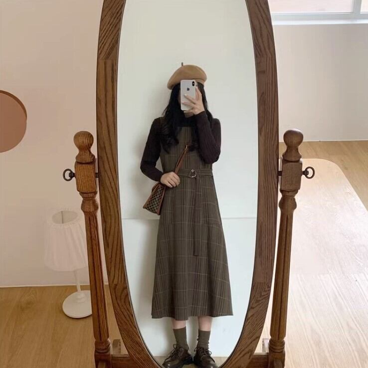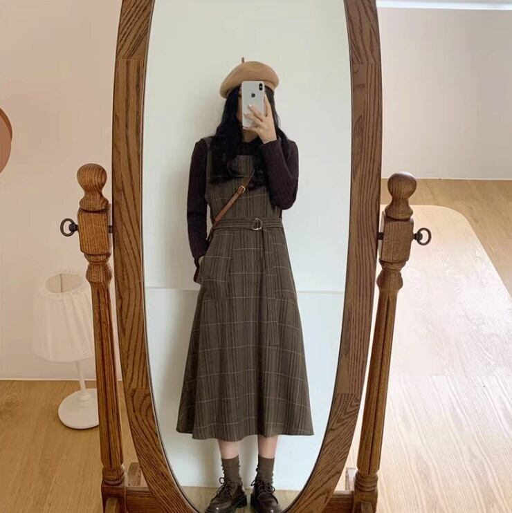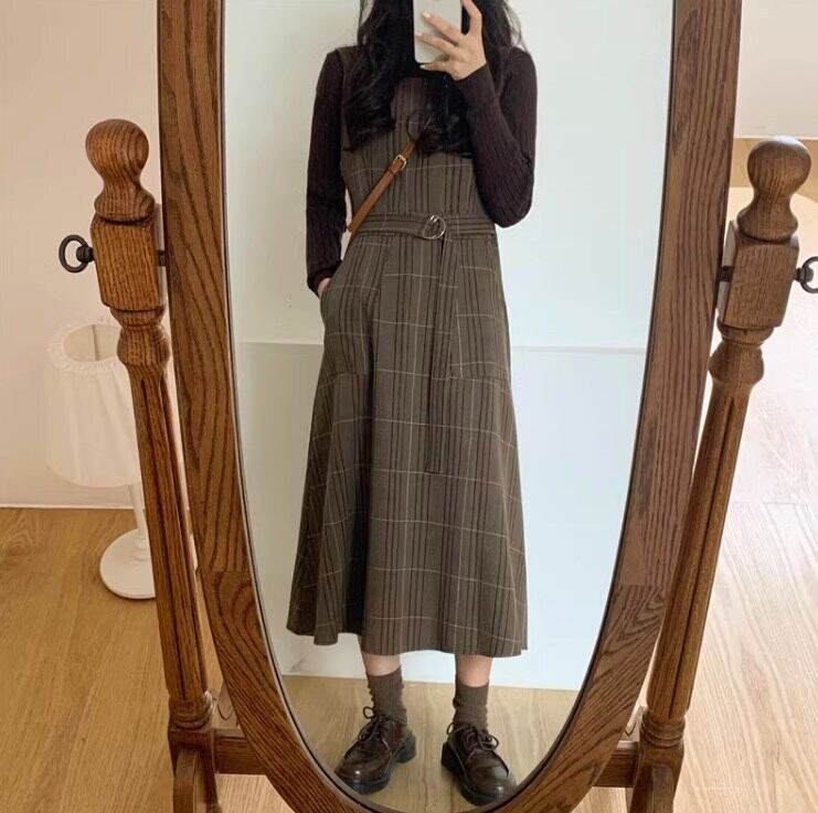 ワンピース ジャンパースカート ジャンスカ ミモレ丈 袖なし スクエアネック 襟なし フレア Aライン ベルト ウエストマーク かわいい 大人可愛い カジュアル 大人 上品 おしゃれ お洒落 レトロ 大人女子 こなれ感 キュート エレガント モダン 主役級 存在感 抜け感 チェック柄 秋 冬 誕生日 10代 20代 30代 40代 レディース 女性用 ママ OL 通勤 学生 通学 デート お出かけ 休日 イベント 旅行 オルチャン ファッション コーデ スタイル モテ トレンド S M L XL ブラウン