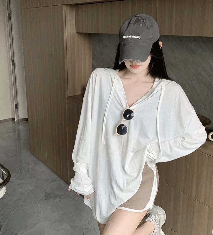 トップス パーカー 白トップス 袖あり 長袖 Vネック 襟なし フード付き 薄手 かわいい 大人可愛い シンプル カジュアル 大人 おしゃれ お洒落 大人女子 ラフ スポーティー ルーズ 無地 春 秋 10代 20代 レディース 女性用 デート お出かけ 公園デビュー 女子会 休日 運動 ジム ヨガ 旅行 海 ガーデン レストラン 着回し 普段使い 定番 サイズ S M L XL 色展開 白 ホワイト 灰色 グレー くすみカラー 大人カラー 秋カラー カラバリ