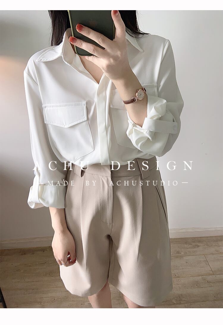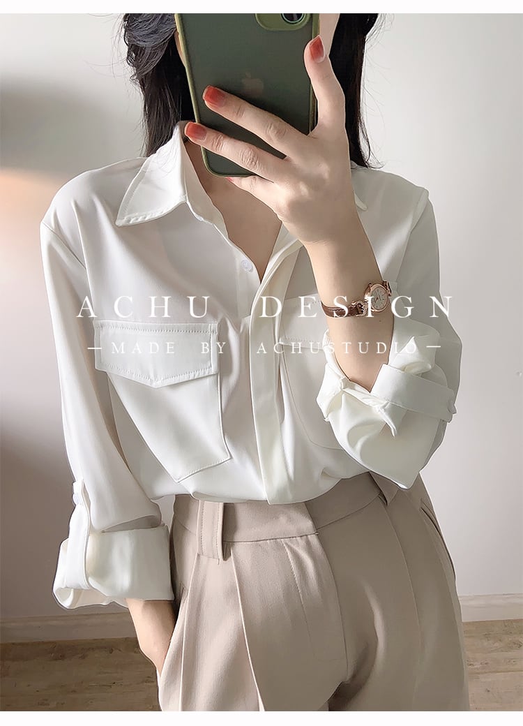 トップス シャツ ブラウス 白シャツ 白トップス 長袖 ドロップショルダー 襟付き ストレート シフォン ポケット 前開き ポリエステル 大人可愛い きれいめ シンプル カジュアル おしゃれ お洒落 かっこいい 大人女子 こなれ感 ラフ 主役級 存在感 抜け感 無地 春 秋 10代 20代 30代 40代 50代 60代 レディース 女性用 デート お出かけ 女子会 休日 イベント リゾート 旅行 着回し 普段使い 重ね着 韓国系 オルチャン ファッション コーデ スタイル 体系カバー S M ホワイト