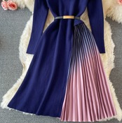 ニットワンピース ベルト プリーツスカート グラデーション ワンピース ひざ丈 袖あり 長袖 ハイネック スリム タイト 細身 ストレート スマート ウエストマーク リブ ニット 薄手 きれいめ カジュアル 大人 上品 おしゃれ 大人女子 こなれ感 エレガント 主役級 とろみ感 抜け感 無地 春 秋 冬 10代 20代 レディース ママ デート お出かけ 休日 パーティー イベント 旅行 ホテル 着回し 普段使い お揃い 楽ちん モテ 体系カバー S M L XL ぴったり ジャスト サイズ ブルー