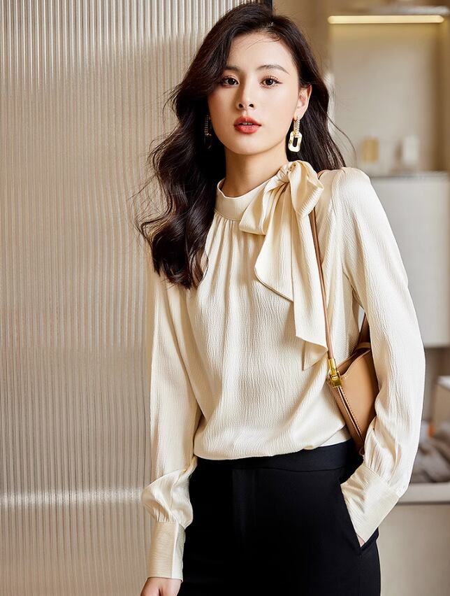トップス ブラウス 白トップス 袖あり 長袖 ラウンドネック 襟なし シフォン リボン 前開き 透け感 ポリエステル かわいい 大人可愛い きれいめ シンプル 上品 おしゃれ 大人女子 エレガント フォーマル 無地 春 秋 20代 30代 レディース 女性用 OL 通勤 デート お出かけ 公園デビュー 女子会 休日 イベント 旅行 ガーデン レストラン 着回し 普段使い モテ サイズ S M L XL 2XL 3XL 4XL 大きいサイズ 色展開 赤 レッド オフホワイト 大人カラー カラバリ