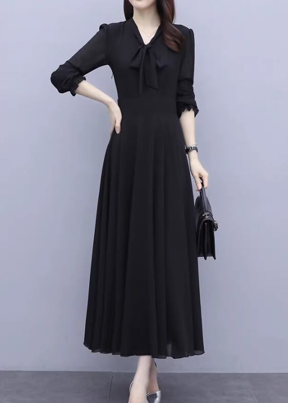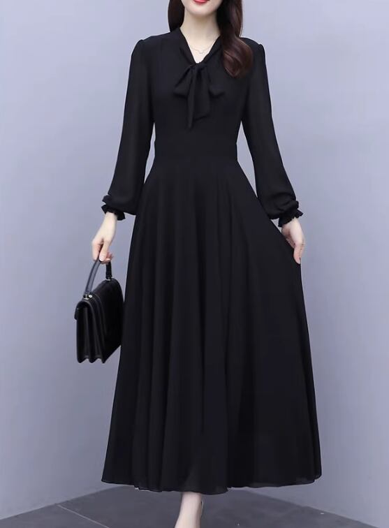 ワンピース フレアワンピース ワンピドレス ロング丈 袖あり 長袖 Vネック 襟なし フレア シフォン リボン ファスナー ハイウエスト 透け感 ポリエステル かわいい 大人可愛い きれいめ シンプル 上品 おしゃれ キュート エレガント 主役級 フォーマル 無地 春 秋 20代 30代 レディース 女性用 デート お出かけ 女子会 休日 イベント 旅行 レストラン 普段使い モテ 脚長 サイズ M L XL 2XL 3XL 4XL 5XL 大きいサイズ 色展開 ブラック レッド ワインレッド カラバリ