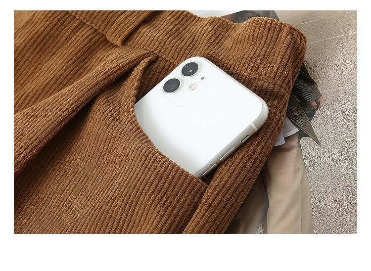 コーデュロイ素材が上品な雰囲気を演出し、ストレートなシルエットがスタイルを美しく見せてくれます。