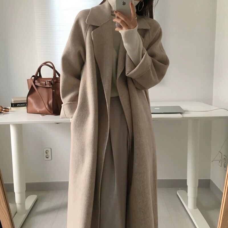 アウター コート ロングコート ダブルフェイスコート ひざ丈 膝下 ミモレ丈 袖あり 長袖 ボリューム袖 Vネック 襟付き ベルト ウエストマーク 大人可愛い きれいめ シンプル カジュアル 上品 おしゃれ お洒落 かっこいい 大人女子 こなれ感 ラフ メンズライク マニッシュ セクシー エレガント モダン 主役級 存在感 とろみ感 抜け感 無地 秋 冬 レディース ビジネス OL 通勤 デート お出かけ 女子会 休日 着回し 普段使い 楽ちん 暖かい 体系カバー 美脚 脚長 定番 フリーサイズ
