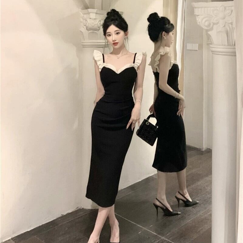 ドレス ワンピース パーティードレス ミモレ丈ドレス タイトドレス ブラックドレス ワンピースドレス セクシードレス 膝下 袖なし ノースリーブ Iライン スレンダー タイト スリム 細身 フリル スリット バックスリット 切り替えデザイン 胸元 かわいい 大人可愛い 大人 上品 おしゃれ お洒落 エキゾチック 大人可愛い 大人女子 こなれ感 ラブリー キュート ガーリー クール エレガント 主役級 存在感 とろみ感 抜け感 ゴージャス 華やか 無地 20代 30代 レディース パーティー イベント