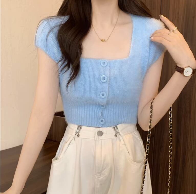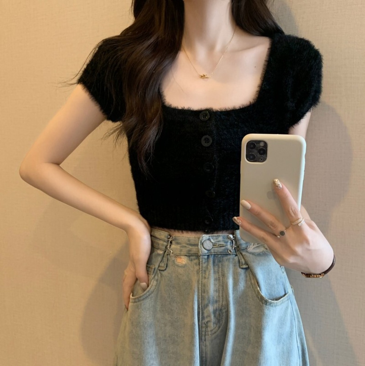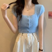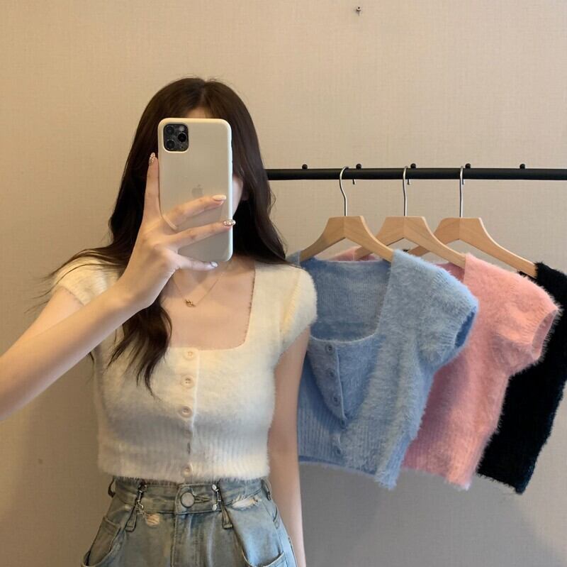 トップス セーター ショート丈 半袖 スクエアネック 襟なし スリム タイト モコモコ ふわふわ 前開き かわいい 大人可愛い きれいめ シンプル カジュアル 大人 おしゃれ お洒落 大人可愛い 大人女子 こなれ感 ラフ ラブリー キュート ガーリー 個性的 モード系 セクシー 主役級 存在感 無地 春 夏 秋 20代 30代 レディース デート お出かけ 休日 ショッピング ファッション コーデ スタイル 楽ちん モテ 流行 インスタ映え サイズ ワンサイズ 色展開 ホワイト ピンク ブルー ブラック