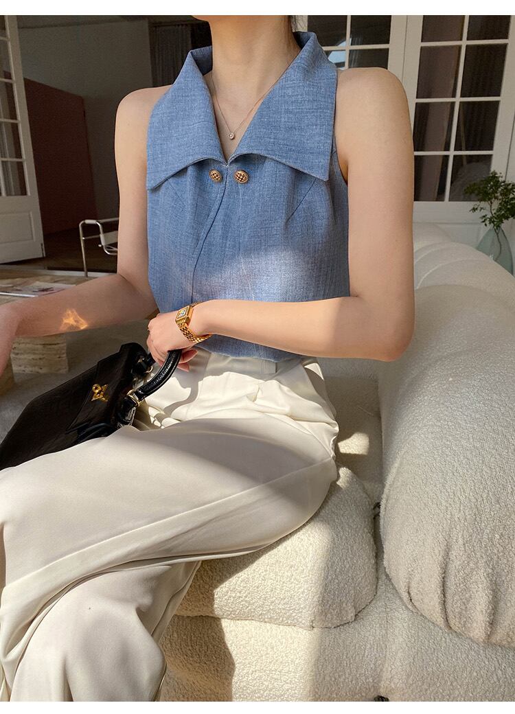 トップス シャツ ブラウス 袖なし ノースリーブ Vネック 襟付き カラーデニム かわいい 大人可愛い きれいめ シンプル カジュアル 大人 上品 おしゃれ お洒落 大人可愛い 大人女子 こなれ感 ラフ ラブリー キュート ガーリー 個性的 クール セクシー エレガント 主役級 存在感 とろみ感 抜け感 無地 夏 20代 30代 レディース デート お出かけ ショッピング ファッション コーデ スタイル 楽ちん モテ 定番 トレンド 流行 インスタ映え サイズ S M L 色展開 デニムブルー