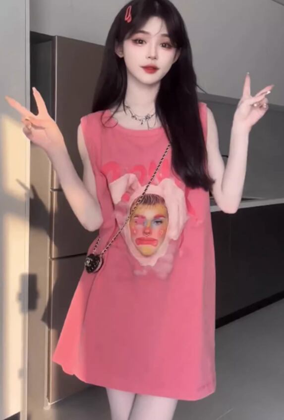 トップス Tシャツ タンクトップ ミディアム 袖なし ノースリーブ ラウンドネック 襟なし 綿 かわいい 大人可愛い カジュアル 大人 おしゃれ お洒落 大人女子 ラフ ラブリー キュート 個性的 存在感 柄 プリント 夏 秋 10代 20代 レディース 女性用 デート お出かけ 休日 リゾート 旅行 海 着回し 普段使い 重ね着 モテ 韓国 韓国風 楽ちん サイズ M L XL 色展開 黒 ブラック ピンク ラズベリーピンク 大人カラー 春カラー 秋カラー カラバリ
