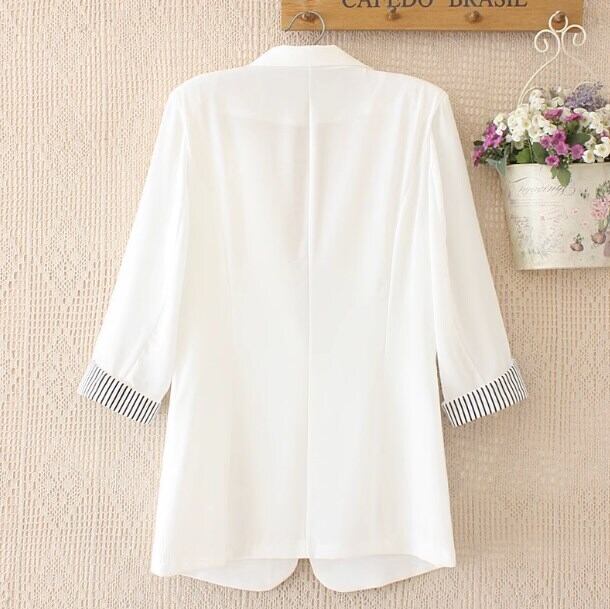 トップス ジャケット 白トップス 袖あり 7分袖 Vネック 襟付き 前開き 透け感 薄手 きれいめ シンプル 大人 上品 おしゃれ お洒落 大人女子 こなれ感 クール エレガント モダン 主役級 存在感 無地 ストライプ 春 夏 10代 20代 30代 40代 50代 レディース ママ オフィス OL 通勤 学生 通学 デート お出かけ 休日 イベント リゾート 旅行 ホテル レストラン 韓国系 オルチャン トレンド サイズ豊富 S M L 2XL 3XL 大きいサイズ ホワイト ブラック