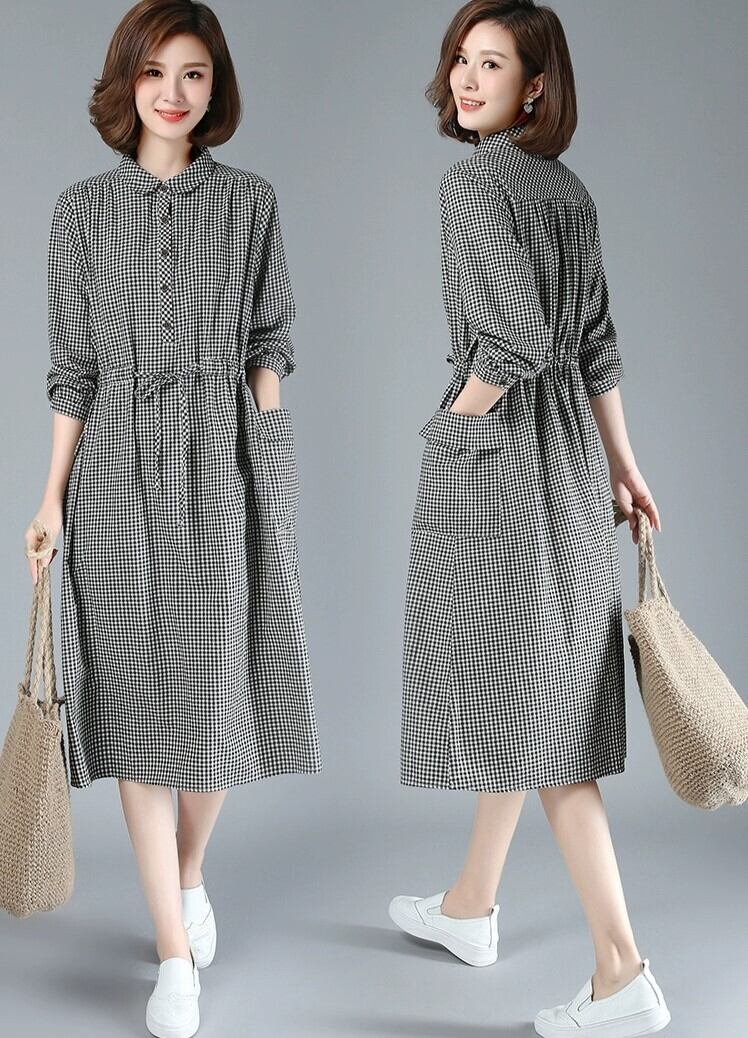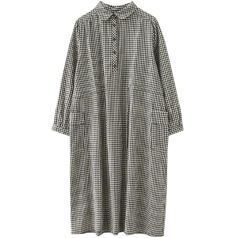 チェック柄が可愛らしさを引き立て、きれいめにもカジュアルにもスタイリングができる長袖のシャツワンピースです。