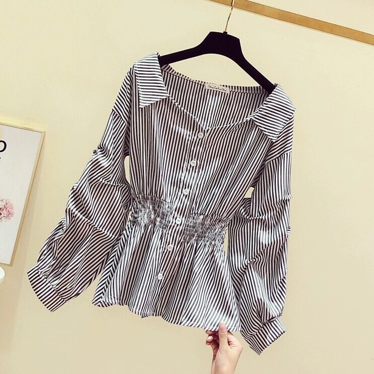 トップス シャツ 長袖 Vネック 襟付き フレア ウエストマーク 前開き 薄手 かわいい 大人可愛い きれいめ シンプル 大人 上品 おしゃれ 大人可愛い 大人女子 こなれ感 ラブリー キュート ガーリー エレガント モダン 存在感 とろみ感 抜け感 無地 ストライプ 春 秋 10代 20代 30代 40代 レディース 女性用 ママ OL 通勤 学生 デート お出かけ 女子会 イベント 旅行 レストラン 着回し 普段使い 重ね着 モテ S M L XL ホワイト ブラック