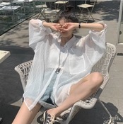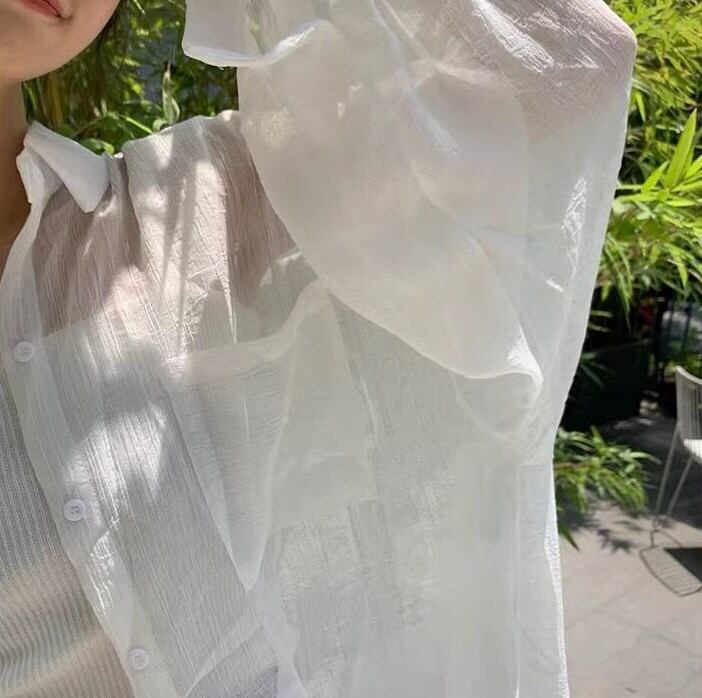 トップス シャツ 白シャツ 白トップス 袖あり 長袖 ランタンスリーブ 襟付き レギュラーカラー 前開き 透け感 シースルー ポリエステル 大人可愛い きれいめ カジュアル 大人 上品 おしゃれ お洒落 大人女子 こなれ感 ラフ セクシー モダン 存在感 抜け感 無地 夏 10代 20代 30代 40代 50代 レディース ママ OL 通勤 学生 通学 デート お出かけ 公園デビュー 休日 アウトドア イベント リゾート 旅行 海 プール 韓国系 オルチャン 定番 トレンド フリーサイズ ホワイト ブルー