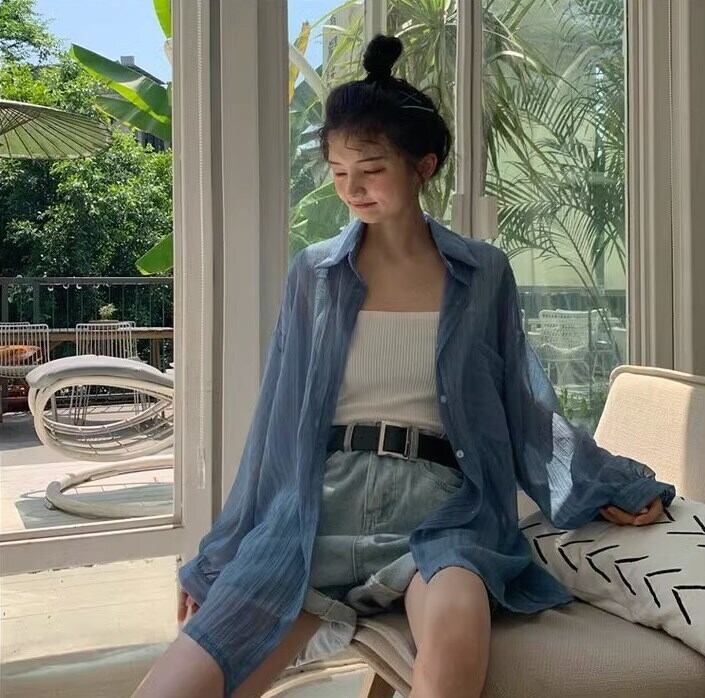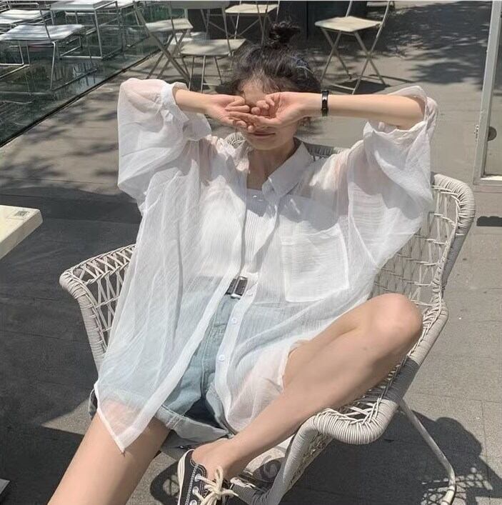 透け感のあるシアーシャツで、日焼け防止と涼しげな着こなしを叶えましょう。