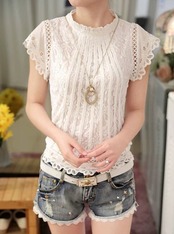 トップス ブラウス 白トップス 半袖 ラウンドネック スタンドカラー レース 透け感 シースルー 薄手 かわいい 大人可愛い きれいめ 大人 上品 おしゃれ お洒落 エキゾチック 大人可愛い 大人女子 こなれ感 ラブリー キュート ガーリー 個性的 エレガント 存在感 とろみ感 抜け感 花柄 夏 10代 20代 30代 レディース 女性用 学生 デート お出かけ 女子会 リゾート 旅行 海 プール 着回し 普段使い 重ね着 モテ 穴あき S M L XL 2XL 3XL 白 ホワイト