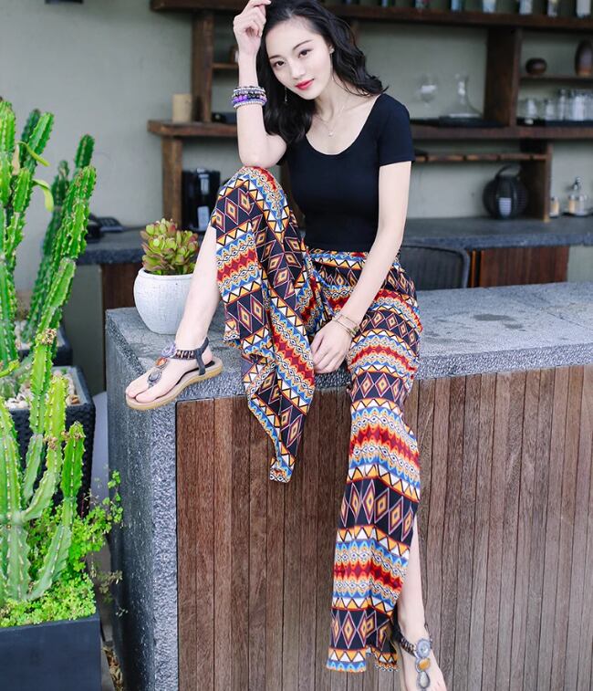 パンツ ワイドパンツ ロング ワイド スリット サイドスリット ハイウエスト 異国風 かわいい 大人可愛い カジュアル おしゃれ かっこいい レトロ アジアン エスニック エキゾチック こなれ感 ラフ ルーズ 個性的 柄 夏 秋 女性 レディース デート お出かけ 旅行 海 レストラン ビーチ 公園 女子会 休日 バカンス ショッピング カフェ コーデ 美脚 脚長 普段使い 着回し S M L XL 大人カラー 春カラー 秋カラー