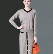 セットアップ 膝丈 長袖 袖あり Vネック 襟なし Iライン フェミニン ポケット ハイウエスト ウエストゴム ニット かわいい 大人可愛い きれいめ シンプル 上品 おしゃれ こなれ感 ラフ 主役級 存在感 フォーマル 都会的 無地 春 秋 授業参観 レディース 女性用 20代 30代 オフィス OL 通勤 デート お出かけ 旅行 レストラン 女子会 休日 発表会 カフェ 婚活 コーデ 普段使い 着回し モテ 清楚 S M L XL 2XL グレー カーキ 大人カラー 秋カラー カラバリ