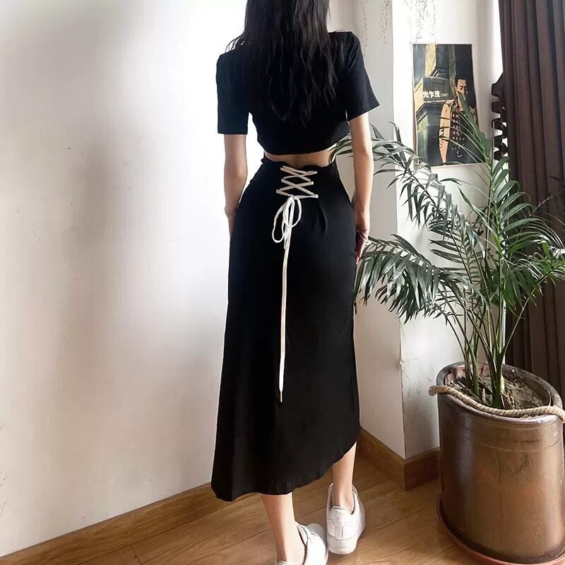 ワンピース Tシャツワンピース Tシャツワンピ ミモレ ロング 半袖 Vネック 襟付き Aライン カット カットワーク 背中開き ハイウエスト 編み上げ レースアップ 綿 コットン PU 大人可愛い カジュアル おしゃれ かっこいい こなれ感 ラフ クール 主役級 存在感 抜け感 無地 夏 デート お出かけ イベント 海 プール ビーチ 女子会 休日 コンサート ライブ カフェ フェス モノトーン お揃い 双子 韓国 オルチャン コーデ 脚長 普段使い 着回し S M L XL 2XL ブラック