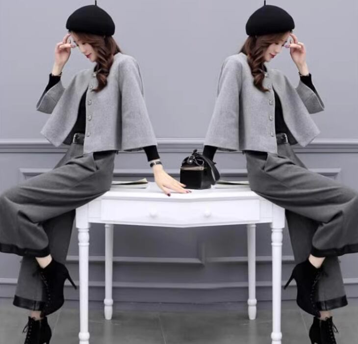 ツーピース ジャケット パンツ セットアップ ワイドパンツ クロップド丈 長袖 ラウンドネック ワイド フェミニン ファスナー ポケット ハイウエスト 前開き ボタン ウール 大人可愛い きれいめ シンプル 上品 おしゃれ かっこいい こなれ感 ラフ 主役級 存在感 フォーマル 都会的 無地 秋 冬 レディース 20代 30代 オフィス ビジネス OL 通勤 デート お出かけ レストラン 女子会 休日 ショッピング カフェ コーデ 防寒 美脚 普段使い 着回し S M L XL 2XL グレー