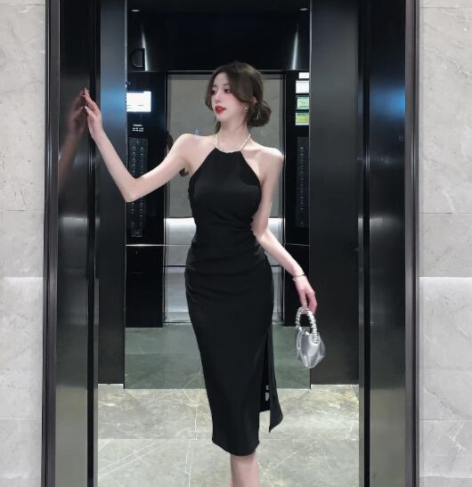 ワンピース レディース ドレス 膝下 袖なし ホルターネック 襟なし タイト スリム 細身 スリット かわいい 大人可愛い きれいめ シンプル カジュアル おしゃれ かっこいい こなれ感 ラフ 個性的 クール モード系 エレガント モダン 主役級 存在感 抜け感 都会的 ベーシック ナチュラル 無地 春 夏 デート お出かけ パーティー イベント ショッピング カフェ モノトーン 美脚 脚長 モテ 清楚 トレンド 流行 インスタ映え 定番 S M L XL ブラック ベーシックカラー 大人カラー