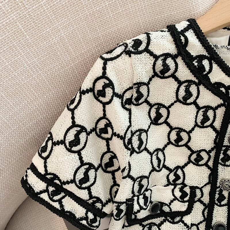 レディース セットアップ ジャケット ジャケット風 半袖ジャケット ショートパンツ ミニ 半袖 ラウンドネック 襟なし ストレート ポケット ハイウエスト 前開き 総柄 モノグラム モノグラム柄 夏 デート お出かけ パーティー イベント リゾート 旅行 レストラン 女子会 休日 ホテル ショッピング カフェ モノトーン お揃い 双子 韓国 オルチャン コーデ プレゼント 体型カバー スタイルアップ スタイルアップ効果 美脚 脚長 普段使い 着回し モテ S M L XL ホワイト