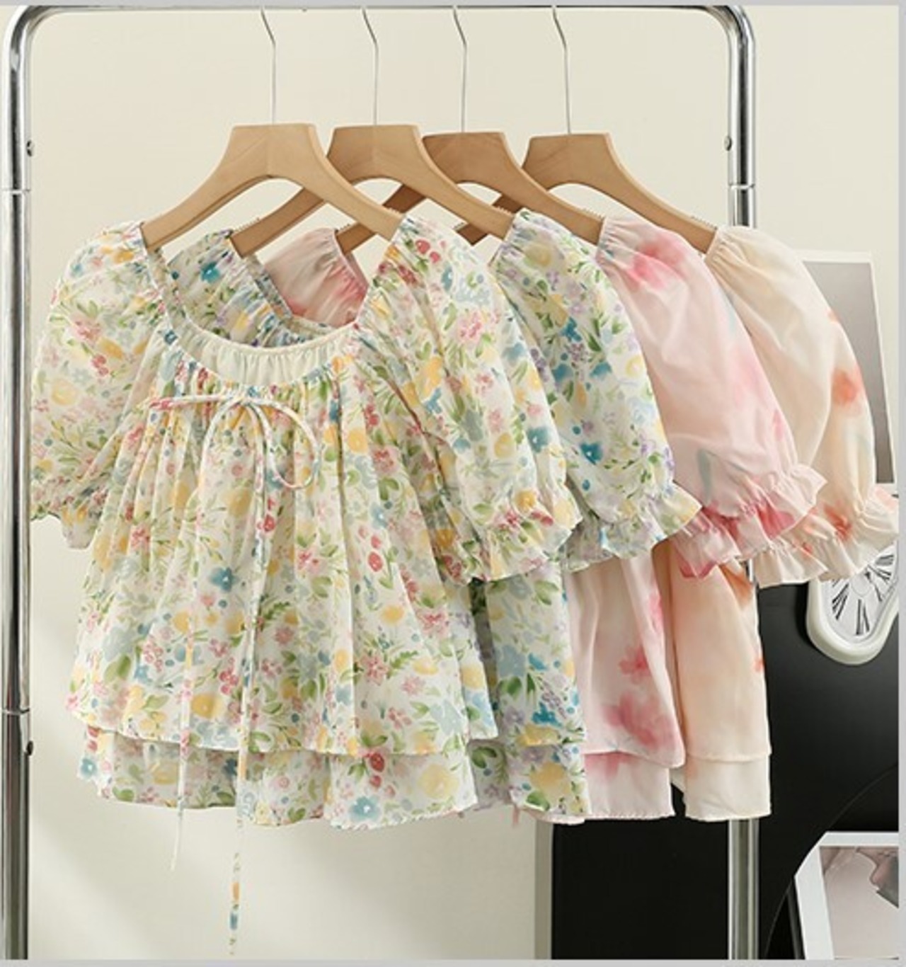 レディース トップス プルオーバー ショート 半袖 パフスリーブ フリル袖 ラウンドネック 襟なし セミフレア ストレート フェミニン 薄手 リボン かわいい 大人可愛い シンプル カジュアル おしゃれ こなれ感 ラフ ガーリー 主役級 存在感 抜け感 キュート 花柄 フラワー 夏 デート お出かけ イベント リゾート 旅行 海 プール レストラン ビーチ 女子会 休日 ホテル ショッピング カフェ お揃い 双子 韓国 オルチャン コーデ プレゼント 体型カバー 普段使い 着回し モテ フリーサイズ
