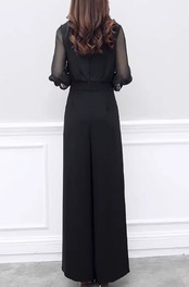 オールインワン ロング 7分袖 袖あり カシュクール 襟なし ワイド シフォン ベルト ウエストマーク ファスナー ポケット ハイウエスト 大人可愛い きれいめ シンプル 上品 おしゃれ かっこいい こなれ感 ラフ クール 主役級 存在感 フォーマル 都会的 無地 春 秋 レディース 女性用 20代 30代 デート お出かけ パーティー イベント 旅行 レストラン 女子会 休日 ショッピング 合コン コンパ カフェ 楽ちん 美脚 脚長 モテ S M L XL 2XL 大きいサイズ 黒 ブラック