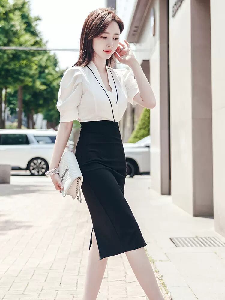 レディース ワンピース ドレス ワンピドレス 膝下 ミモレ 半袖 パフスリーブ Vネック カシュクール 襟なし タイト スリム 切り替え ドッキング フェミニン スリット バックスリット コンサバ 切り替えデザイン バイカラー 配色 大人可愛い きれいめ シンプル 上品 おしゃれ エレガント 主役級 存在感 ラグジュアリー 無地 夏 デート お出かけ パーティー イベント レストラン 女子会 休日 ホテル モノトーン 韓国 オルチャン コーデ 体型カバー 美脚 脚長 モテ 清楚 S M L XL ブラック