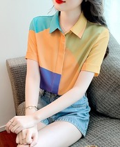 レディース トップス シャツ 半袖シャツ ブラウス 半袖ブラウス 半袖 襟付き 角襟 ストレート ボタン 配色 かわいい 大人可愛い シンプル カジュアル おしゃれ こなれ感 ラフ マニッシュ 個性的 主役級 存在感 抜け感 夏 デート お出かけ イベント リゾート 旅行 海 プール レストラン ビーチ 公園 女子会 休日 バカンス ショッピング カフェ お揃い 双子 韓国 オルチャン コーデ プレゼント 体型カバー 普段使い 着回し S M L XL 2XL ゆったり オレンジ系