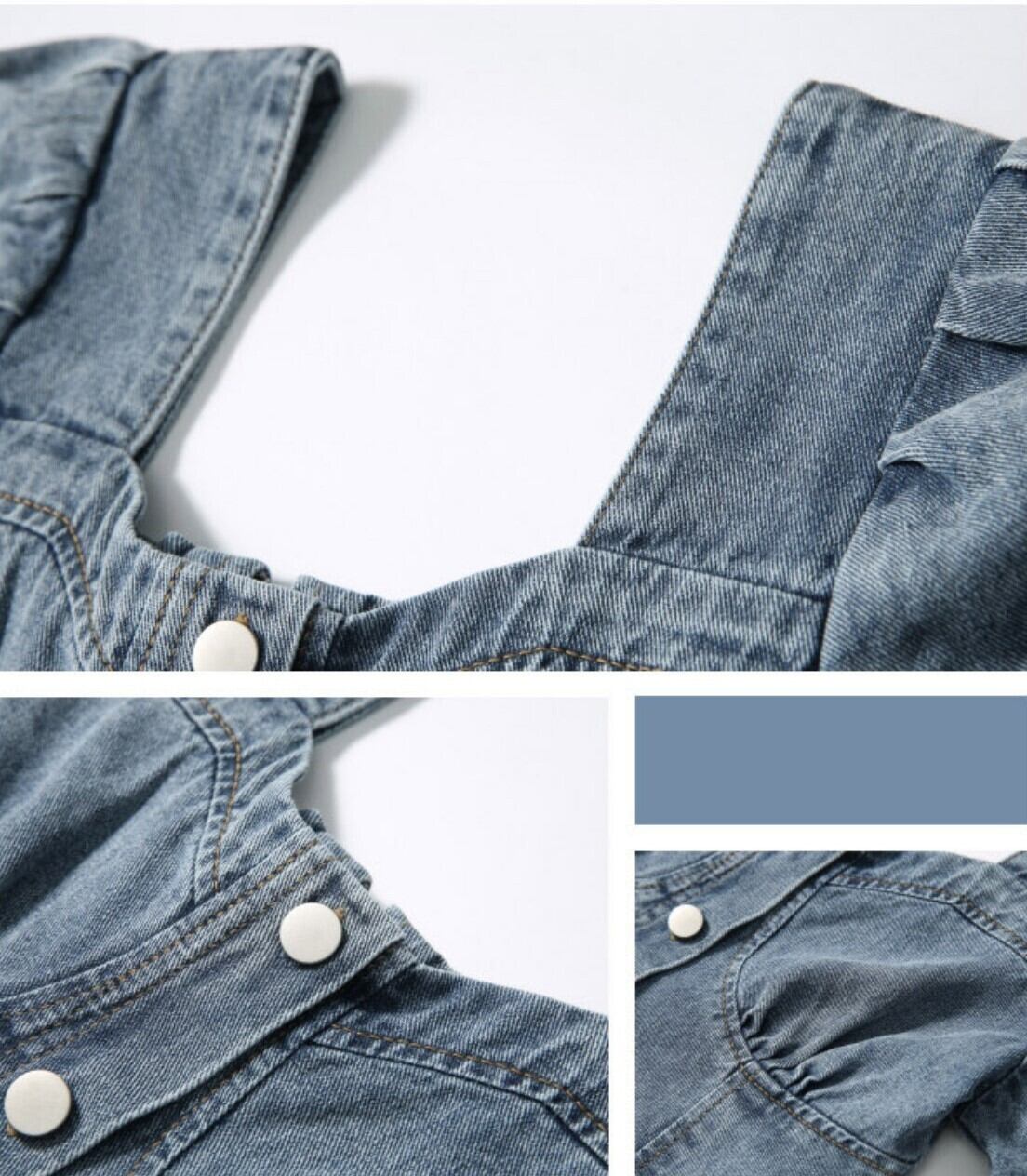 レディース ワンピース デニムワンピース デニムワンピ ミニ 半袖 パフスリーブ Aライン 背中開き ストリート ハイウエスト ボタン ファスナー デニム かわいい 大人可愛い カジュアル おしゃれ こなれ感 ラフ ガーリー 主役級 存在感 抜け感 キュート ロマンティック ナチュラル 無地 夏 デート お出かけ イベント 旅行 レストラン 女子会 休日 ショッピング カフェ 韓国 オルチャン コーデ プレゼント 体型カバー 脚長 普段使い 着回し S M L XL 2XL 3XL 4XL ブルー