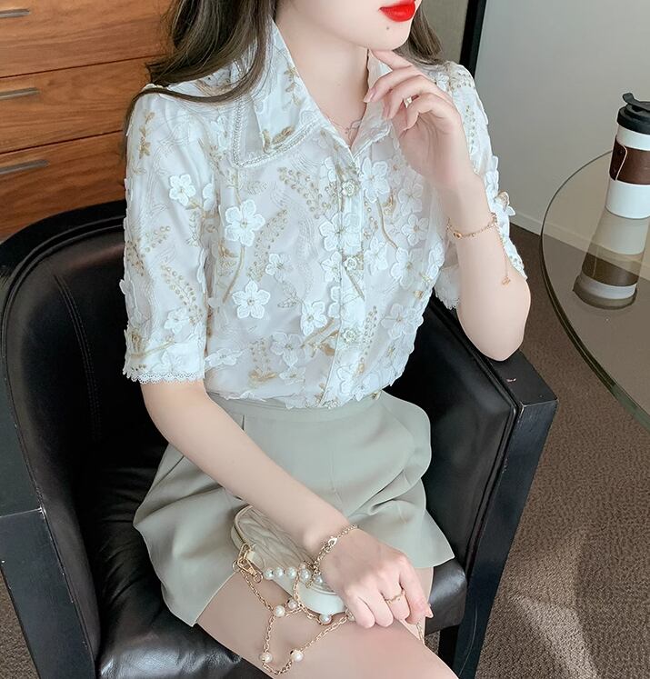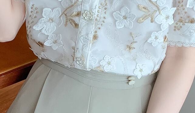 トップス シャツ ミディアム丈 5分袖 袖あり 襟付き 角襟 刺繍 シフォン 前開き ボタン かわいい 大人可愛い きれいめ 上品 おしゃれ レトロ 主役級 存在感 フォーマル 都会的 花柄 フラワー 柄 夏 秋 レディース 女性用 10代 20代 デート お出かけ イベント リゾート 旅行 レストラン 公園 女子会 休日 バカンス ガーデン ショッピング 合コン コンパ カフェ コーデ 普段使い 着回し モテ 清楚 S M L XL 2XL 大きいサイズ オフホワイト 大人カラー 春カラー