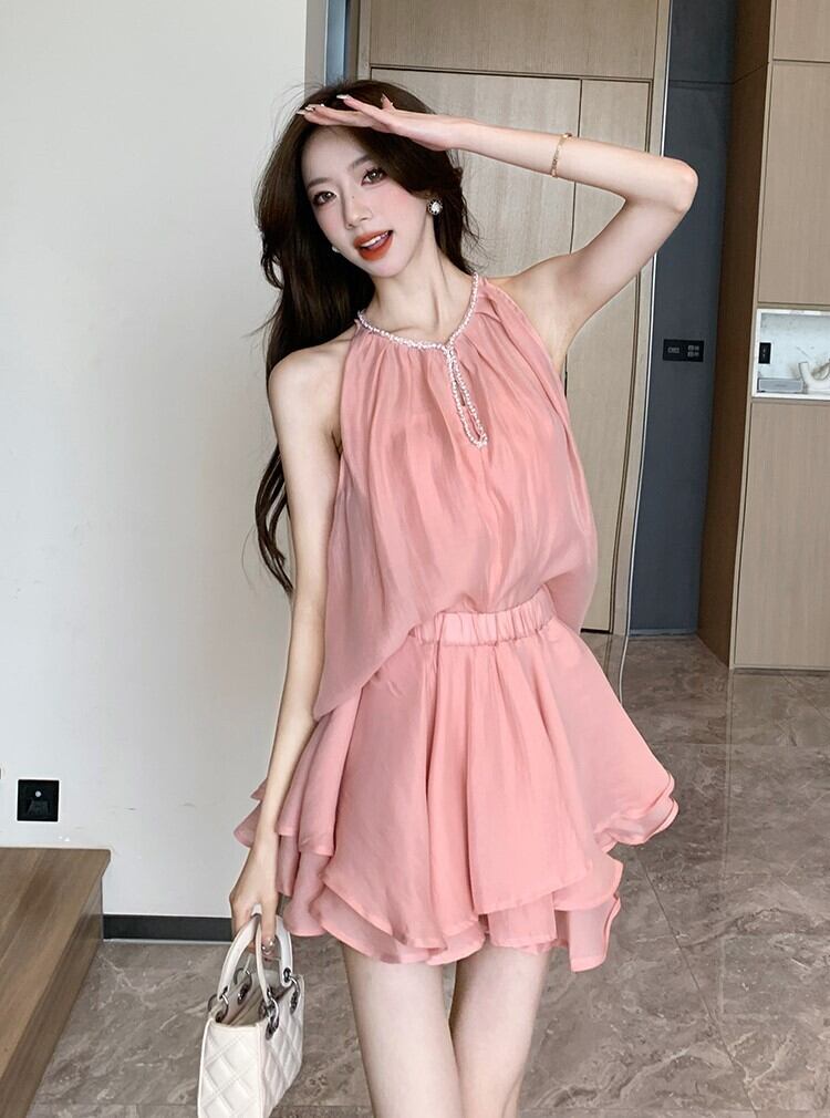 レディース セットアップ ツーピーストップス プルオーバー ボトムス ミニ ノースリーブ ラウンドネック ホルターネック キーネック フレア Aライン フェミニン ハイウエスト 透け感 ビジュー かわいい 大人可愛い シンプル カジュアル おしゃれ こなれ感 ラフ ガーリー 主役級 存在感 抜け感 キュート ロマンティック 無地 夏 デート お出かけ リゾート 海 プール レストラン ビーチ 女子会 休日 バカンス ショッピング カフェ プレゼント 体型カバー 脚長 モテ S M L ピンク アプリコット