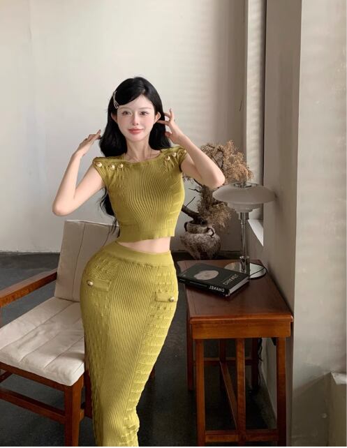 レディース セットアップ トップス ショート丈 ボトムス ロングスカート ノースリーブ スクエアネック タイト スリム Iライン フェミニン ハイウエスト ボタン 金ボタン ニット リブニット かわいい 大人可愛い きれいめ シンプル おしゃれ こなれ感 主役級 存在感 抜け感 無地 夏 デート お出かけ パーティー イベント リゾート 旅行 レストラン 女子会 休日 バカンス ホテル ショッピング カフェ 韓国 オルチャン コーデ 脚長 普段使い 着回し S M L XL 2XL ブラック グリーン
