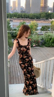 レディース ワンピース ドレス ワンピースドレス プルオーバー ロング マキシ 袖なし ノースリーブ Uネック スクエアネック セミフレア マーメイド 背中開き フェミニン フリル バックコンシャス ハイウエスト 透け感 大人可愛い きれいめ ガーリー エレガント 主役級 存在感 抜け感 ラグジュアリー ロマンティック 花柄 フラワー 夏 デート お出かけ パーティー イベント リゾート 旅行 海 プール レストラン 女子会 休日 バカンス カフェ 体型カバー 脚長 モテ S M L 黒 ブラック