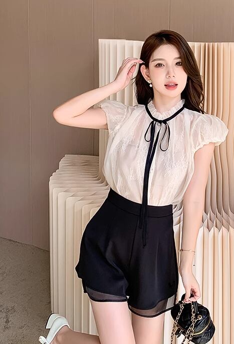 ツーピース 2点セット セットアップ トップス パンツ ショート丈 半袖 パフスリーブ 袖あり ハイネック りぼんタイ フェミニン リボン ハイウエスト 透け感 かわいい 大人可愛い シンプル 上品 おしゃれ 主役級 存在感 キュート 無地 花柄 柄 夏 秋 レディース 女性用 10代 20代 デート お出かけ 旅行 レストラン 女子会 休日 バカンス ショッピング 合コン コンパ カフェ 美脚 脚長 普段使い 着回し モテ 清楚 S M L XL 大人カラー 秋カラー